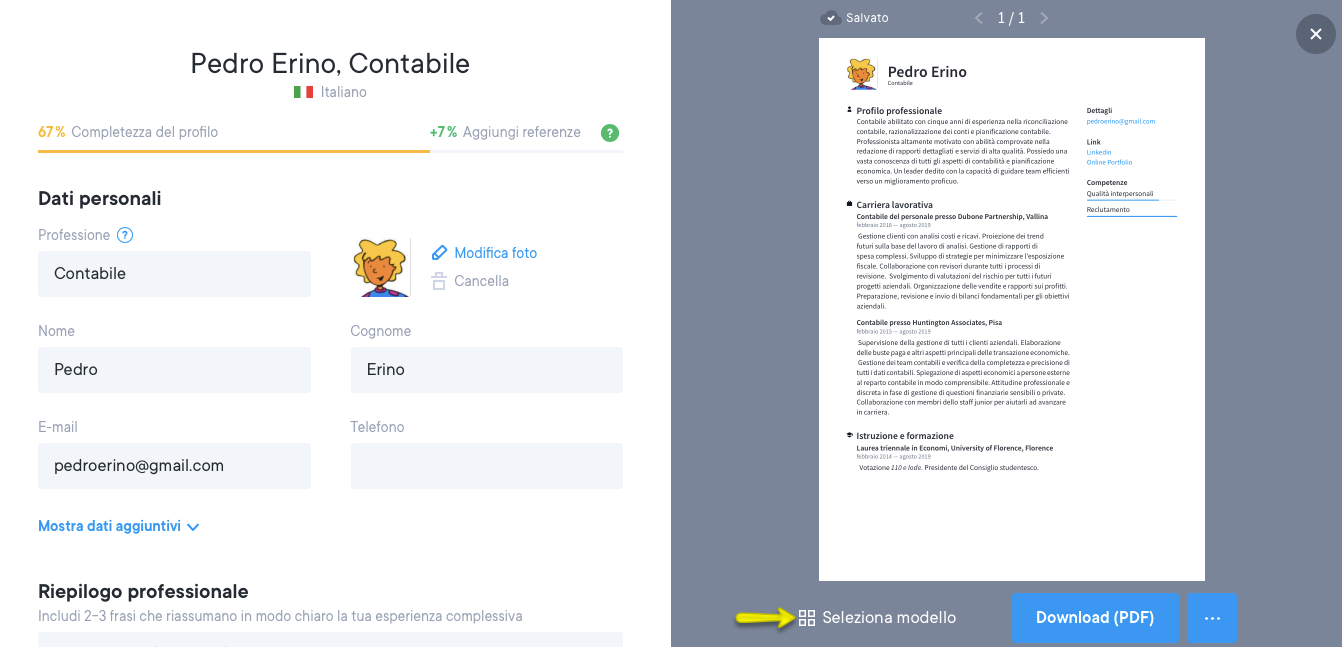 CVapp.it offre diversi modelli e grafiche.